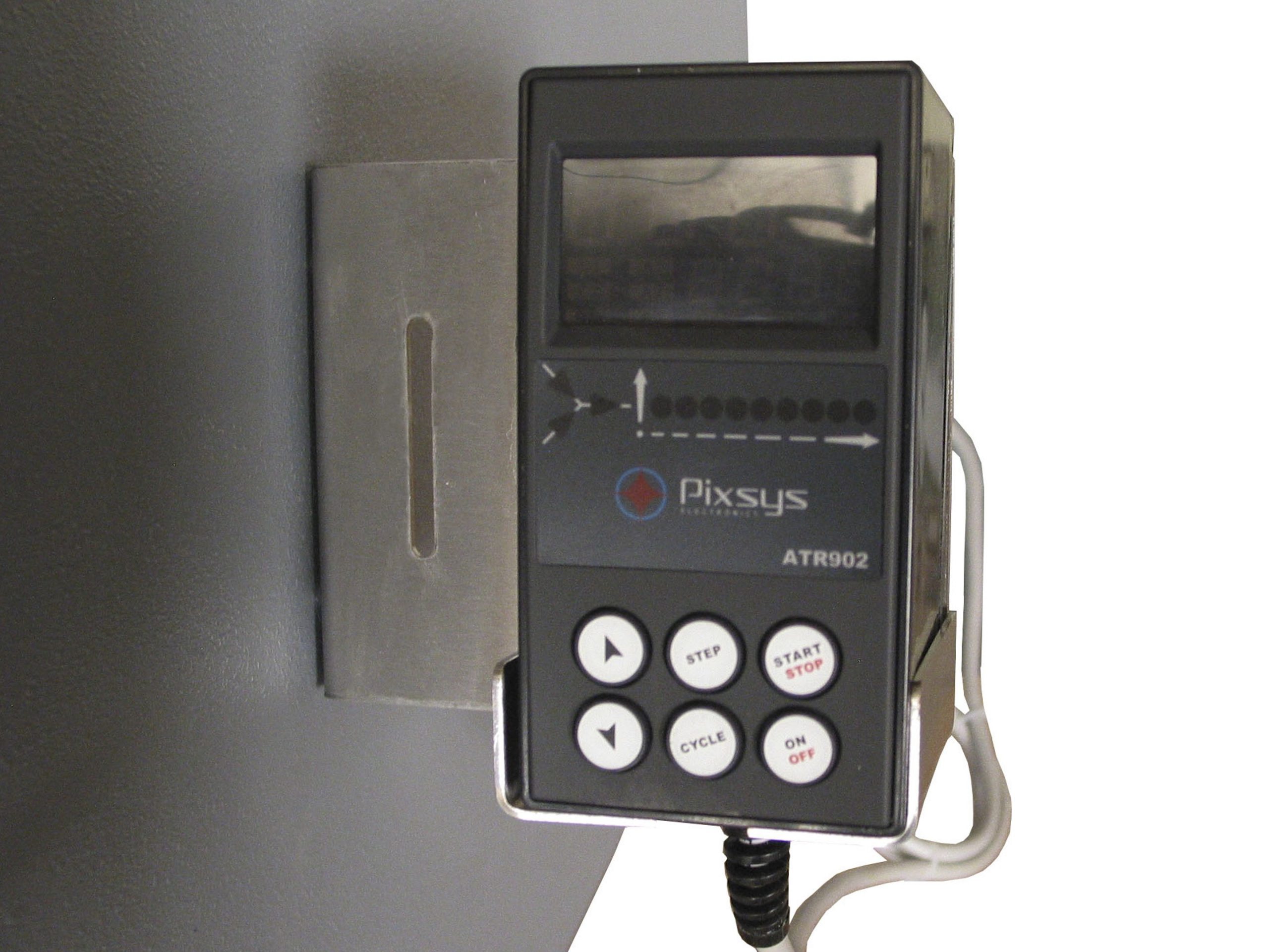 Incluye un programador para hornos de microfusión que incorpora un microprocesador con 15 programas en memoria. Cada programa consta de un tiempo de espera (puesta en marcha retardada) y a escoger entre 1 hasta un máximo de 18 segmentos o rampas. Cada segmento está compuesto por una rampa controlada (subida o bajada de temperatura) y un tiempo de mantenimiento. Realiza un paro automático al final de la cocción.