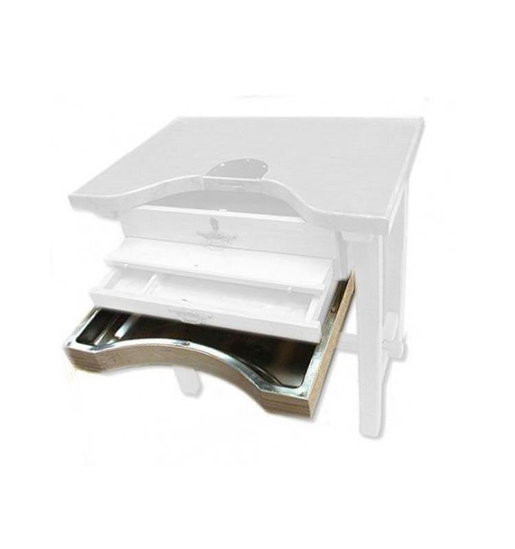 Cajón o bandeja de repuesto para mesa de trabajo, fabricado en madera de haya y recubierto con acero inoxidable embutido. Al estar embutido no tiene ni soldaduras ni pliegues en las aristas, lo que hace que las limaduras no se queden atrapadas en ninguna parte de la bandeja.