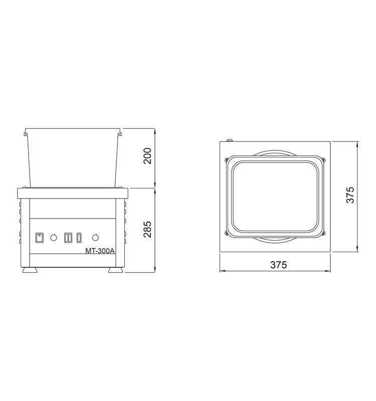 · Tamaño de la máquina: 375 x 375 x 285 mm