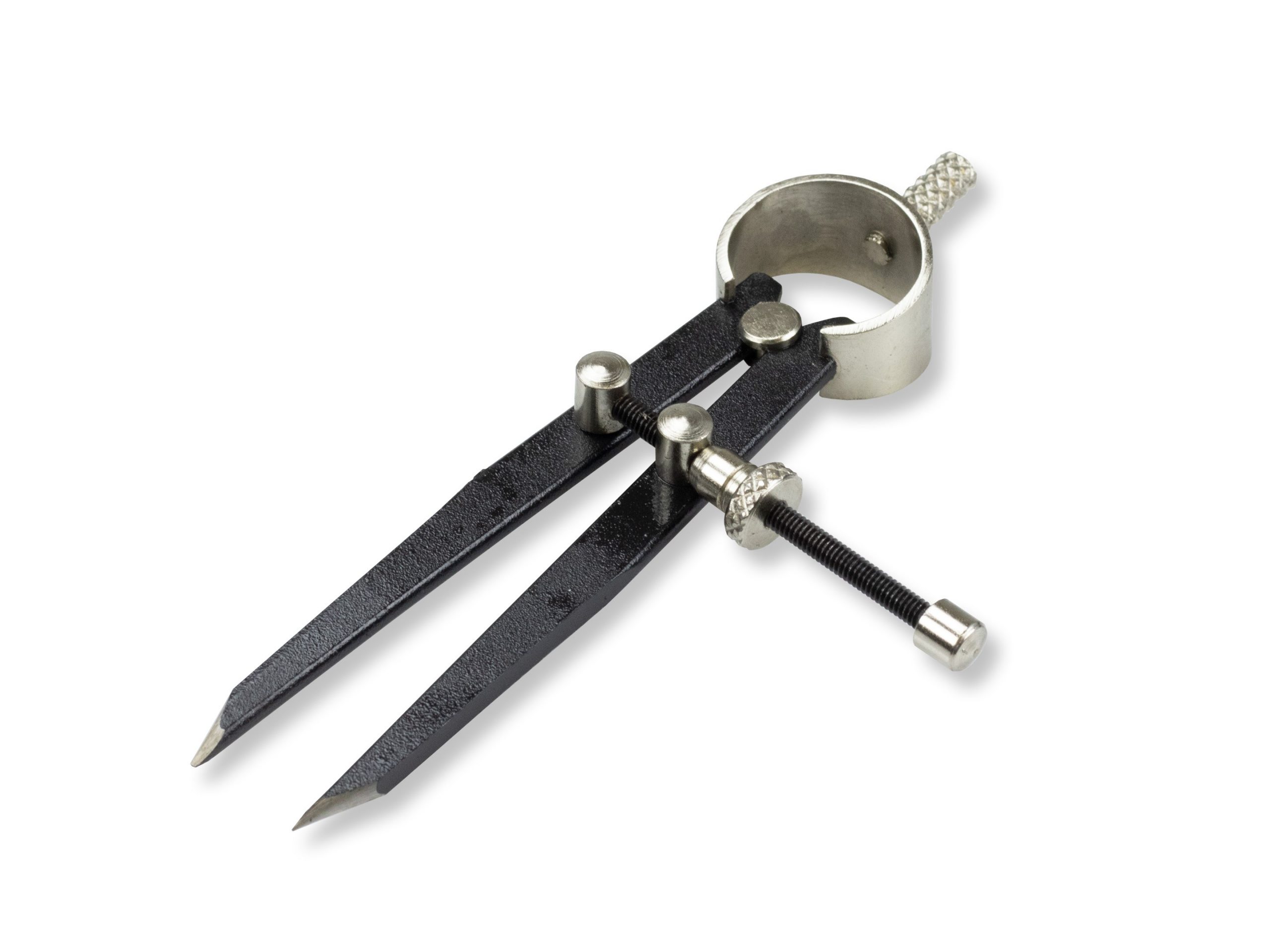 Compás fabricado en acero con puntas muy finas. La medida hace referencia a la longitud de sus brazos. La apertura es ajustable y se puede fijar mediante el vástago roscado que lleva incorporado.