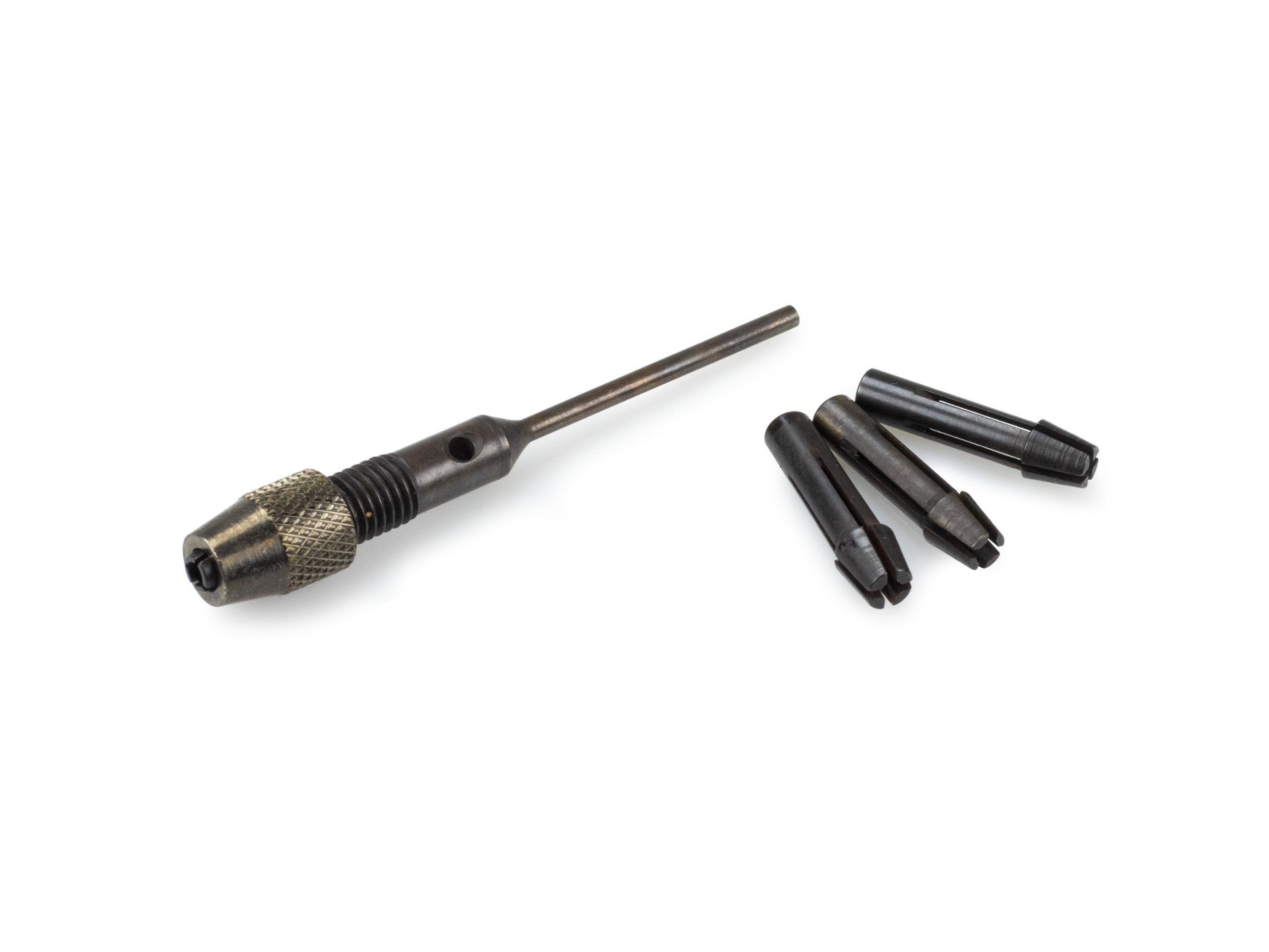 Juego porta herramientas compuesto de un adaptador y cuatro pinzas de cuatro labios con diversos diámetros.