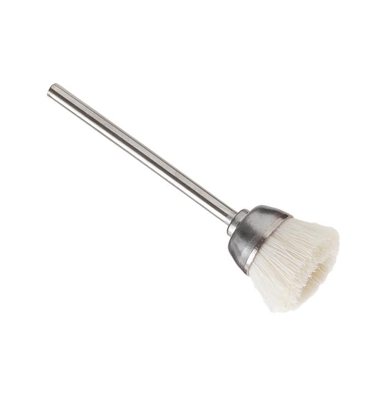 Cepillo montado en forma de copa fabricado en pelo de cabra blanco. Indicado especialmente para el proceso de pulido y abrillantado de todo tipo de metales.