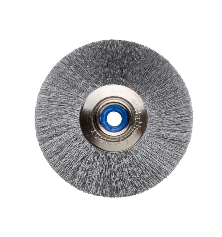 Cepillo circular montado y fabricado en hilo acero ondulado. Indicado especialmente para el proceso de desbaste, pulido y satinado de todo tipo de metales.