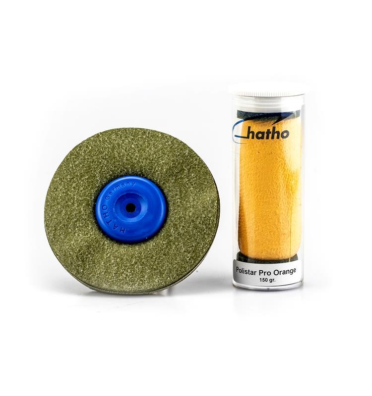 Set para pulido compuesto por un disco de pulido fabricado en tejido de algodón siliconado y la pasta para pulir Polistar Pro Orange. Indicado especialmente para el desbaste, pulido y abrillantado de todo tipo de metales.