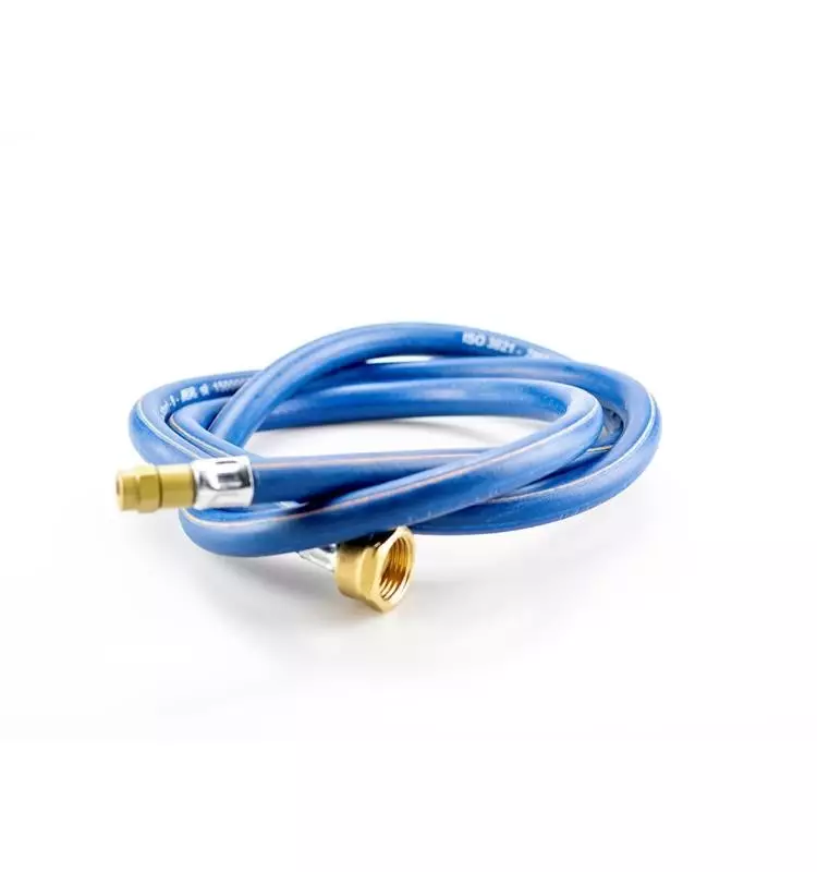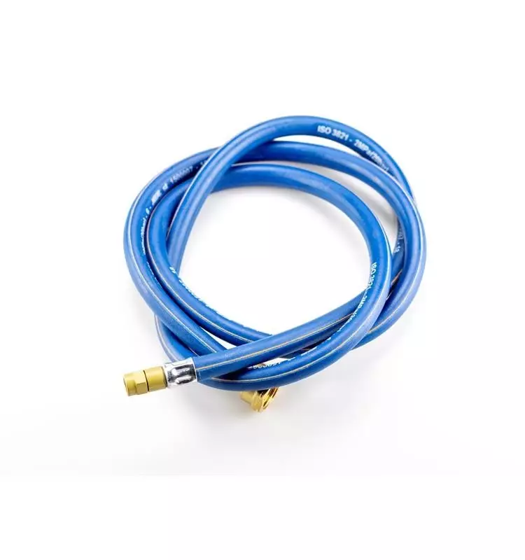 Manguera racorada homologada según la normativa vigente con una medida de 1,5 metros de largo. Compatible con la gama de sopletes de la marca Orca.