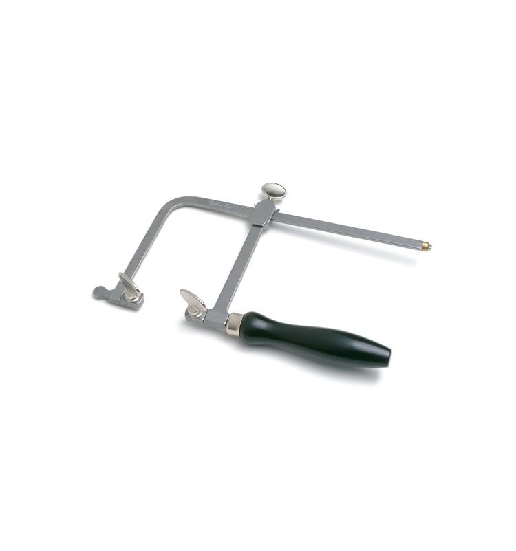 Arco de sierra de primera calidad, forjado en acero endurecido. EstĆ” montado encima de un mango de madera contorneado y dispone de abrazaderas dentadas para sujetar firmemente las hojas de sierra.