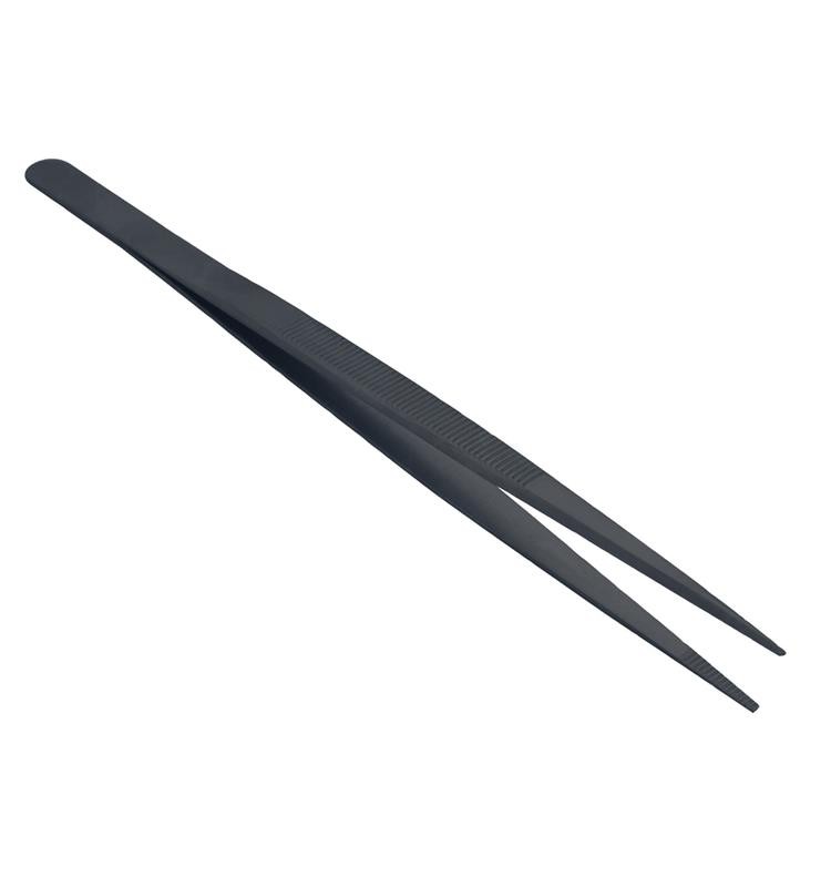 Pinzas para gemologĆa de excelente calidad y acabado. Su color negro las hace muy indicadas para las piedras de color ya que no altera la vista y evita reflejos dejando la piedra exenta de alteración en el color.Con punta recta extra fina e interior estriado para sujetar piedras con la mayor seguridad y agarre posibles.