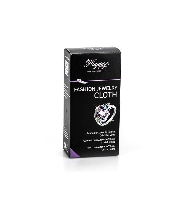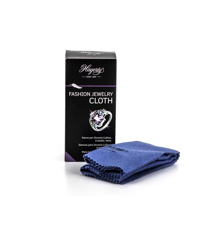 Hagerty Fashion Jewelry Cloth es una gamuza 100% algodón ideal para la limpieza profunda de todo tipo de joyas de bisutería con circonitas, cristal o vidrio, sin dañarlas. Se sirve impregnada con un producto específico que elimina cualquier resto de suciedad y devuelve el brillo original a la joya.