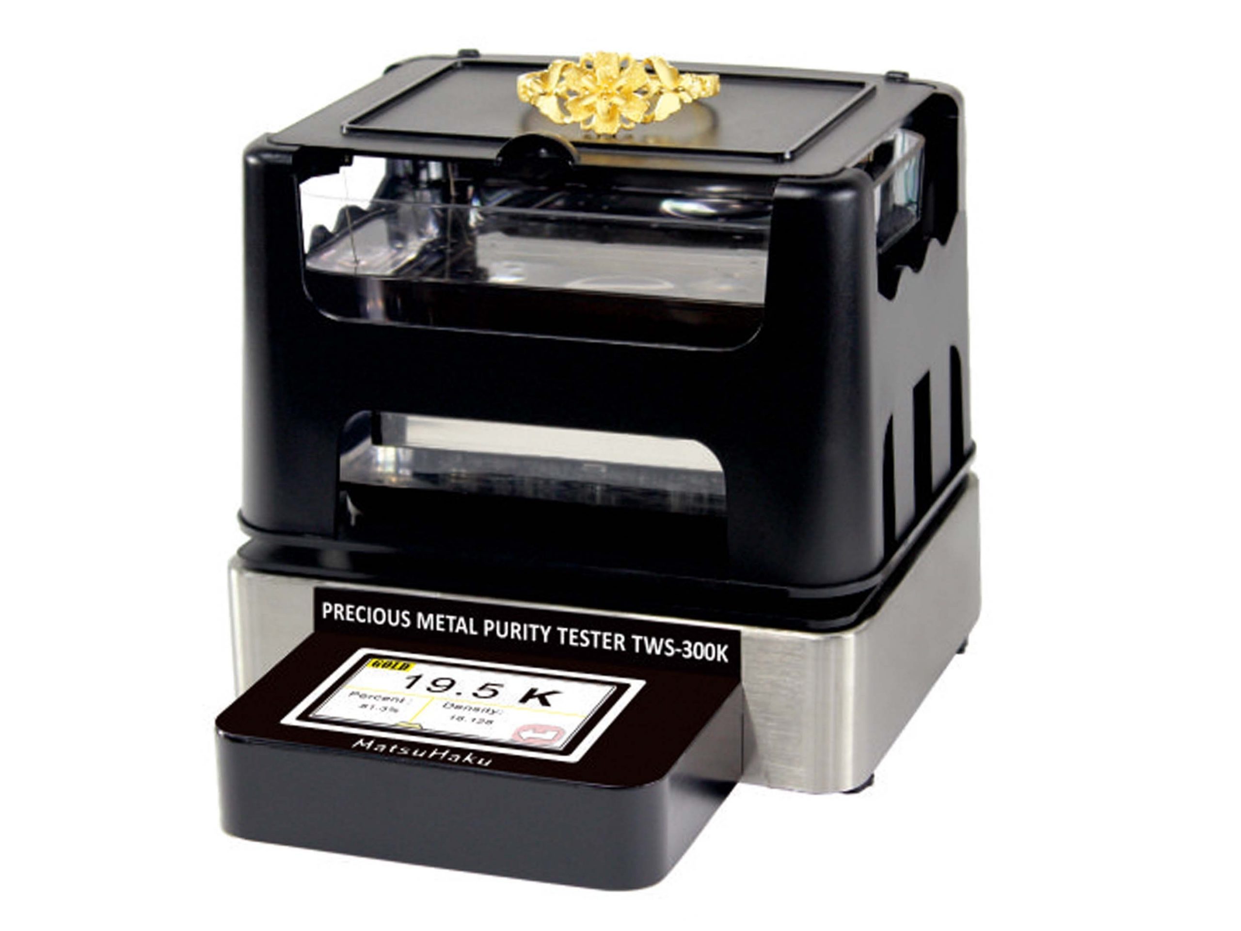 Balanza densímetro para el test de metales preciosos con la que podemos comprobar el quilataje y el % de pureza. No deja manchas ni arañazos en las piezas de oro a comprobar, tampoco requiere el uso de ácidos.