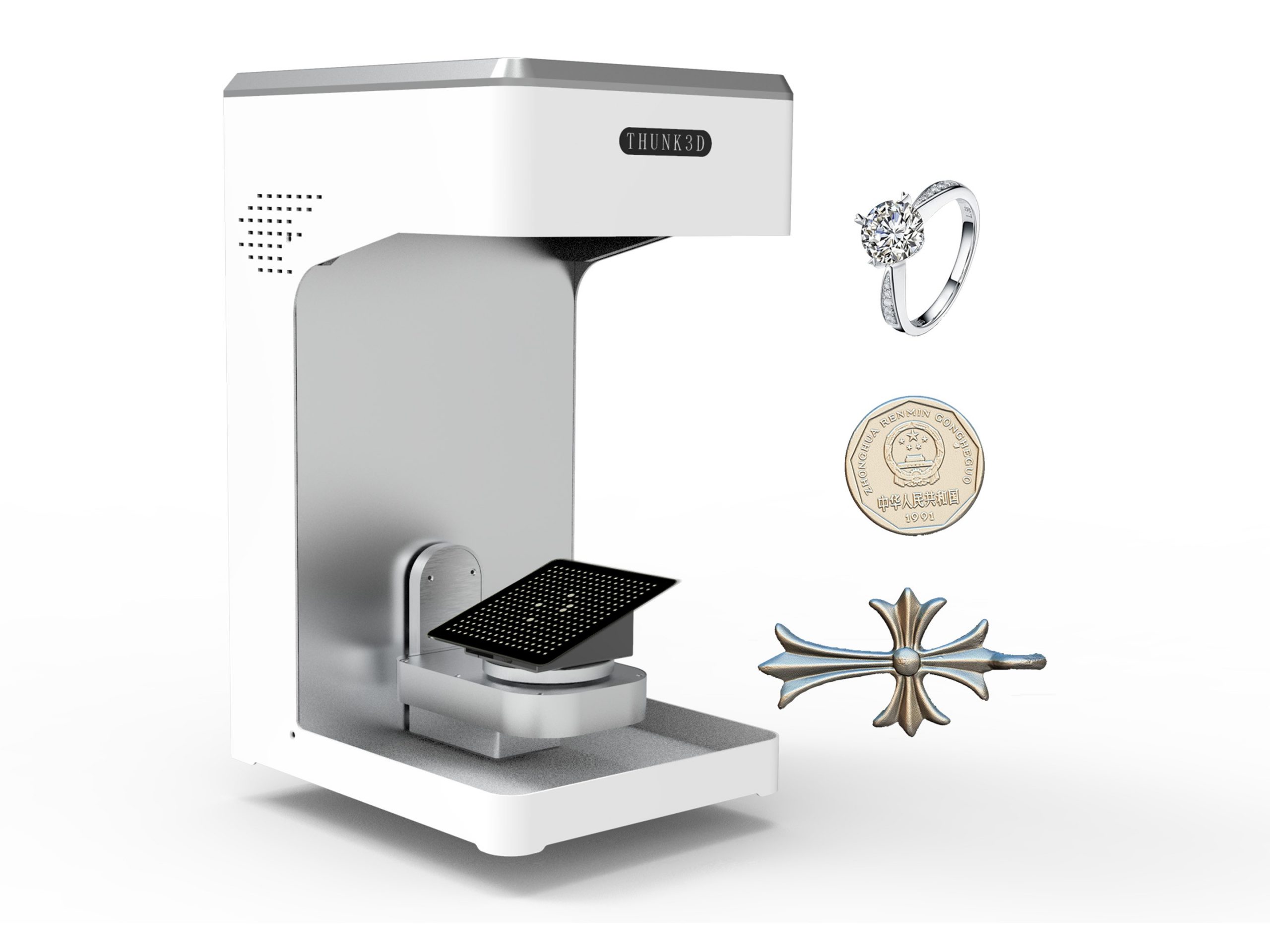 Optimiza tus procesos de diseño y producción con el escáner 3D JS500 de Thunk3D, una herramienta especializada para joyería fina que permite escanear con máxima precisión piedras, anillos, monedas, modelos dentales y piezas complejas en segundos.