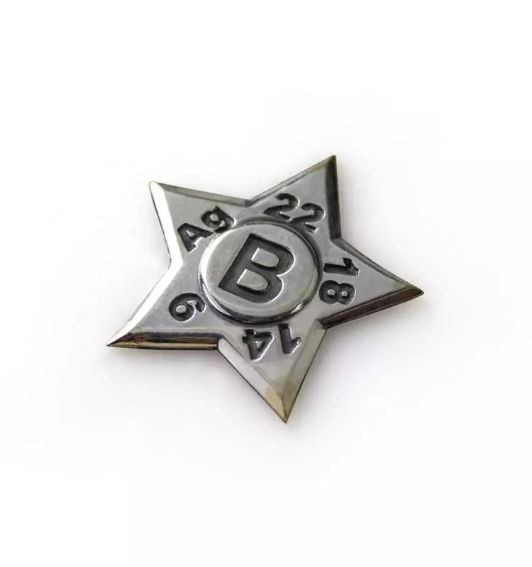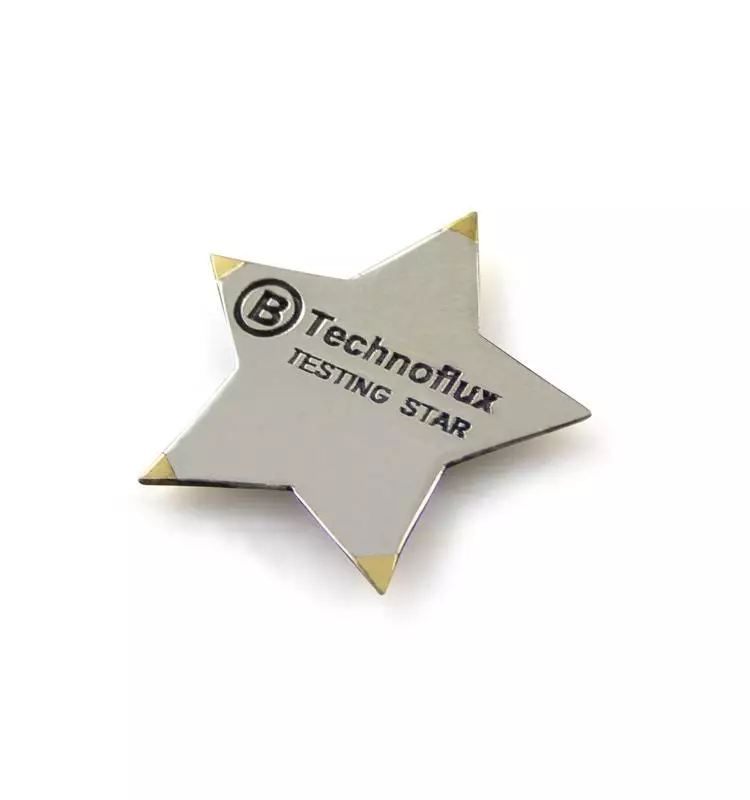 Estrella de toque de 5 puntas para realizar la comprobación de plata y oro de 9, 14, 18 y 22 quilates. Está fabricada en su totalidad de plata fina.