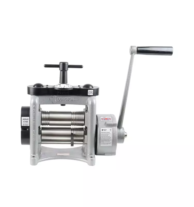 La Agile C165 de capacidad masiva de Durston continúa la tradición de Durston de un diseño superfuerte para soportar cada carga sin esfuerzo, sin comprometer la calidad. Encontrará 5 medias vueltas como parte del rodillo principal con una enorme área plana de 85 mm y 11 ranuras cuadradas. El Agile C165 combina con el resto de la gama Durston con rodillos especialmente endurecidos por inducción a 64 RC y el cañón principal a una profundidad de 6 mm, lo que le brinda una vida útil de servicio. Durstons se enorgullece de fabricar internamente todos nuestros trenes de laminación para garantizar un estricto control de calidad. Mecanizamos, endurecemos y rectificamos los rollos en nuestra fábrica de High Wycombe. Los bloques de cojinetes están totalmente soportados, se autolubrican y no requieren mantenimiento, lo que brinda el mejor acabado laminado posible. La inigualable caja de cambios de cinco a uno de Durston facilita los giros, mientras que detrás de la cubierta, encontrarás dos engranajes especialmente formados para hacer que rodar sea aún más suave. Las características de seguridad incluyen una protección alrededor de los engranajes superiores. El tren de laminación Agile C165: parte de la galardonada gama de productos de Durston, disponible desde 1961.