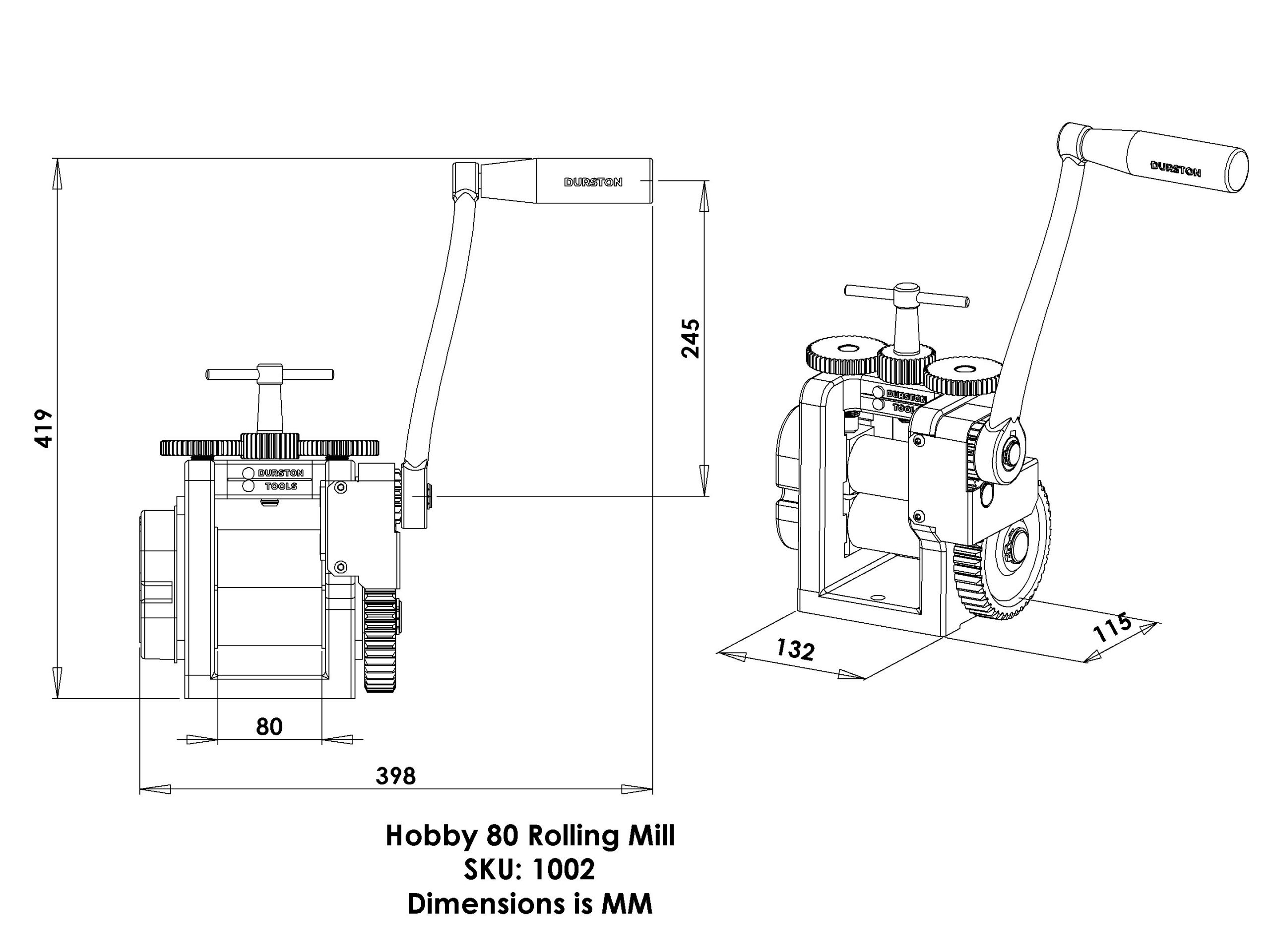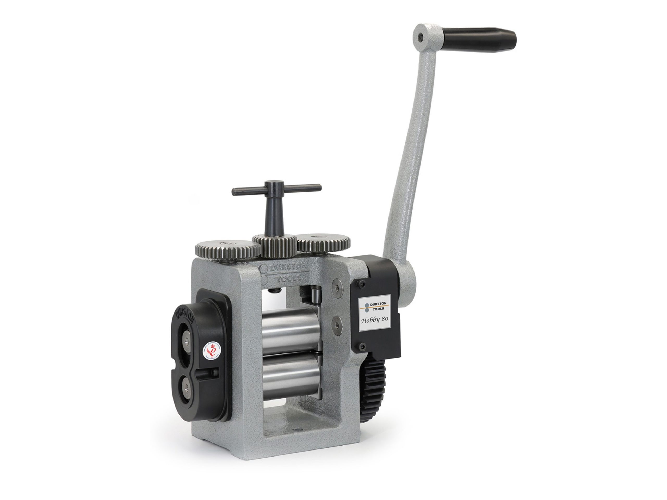 Laminador Durston Hobby 80, ideal para joyeros y artesanos que buscan precisión y durabilidad en un diseño compacto.