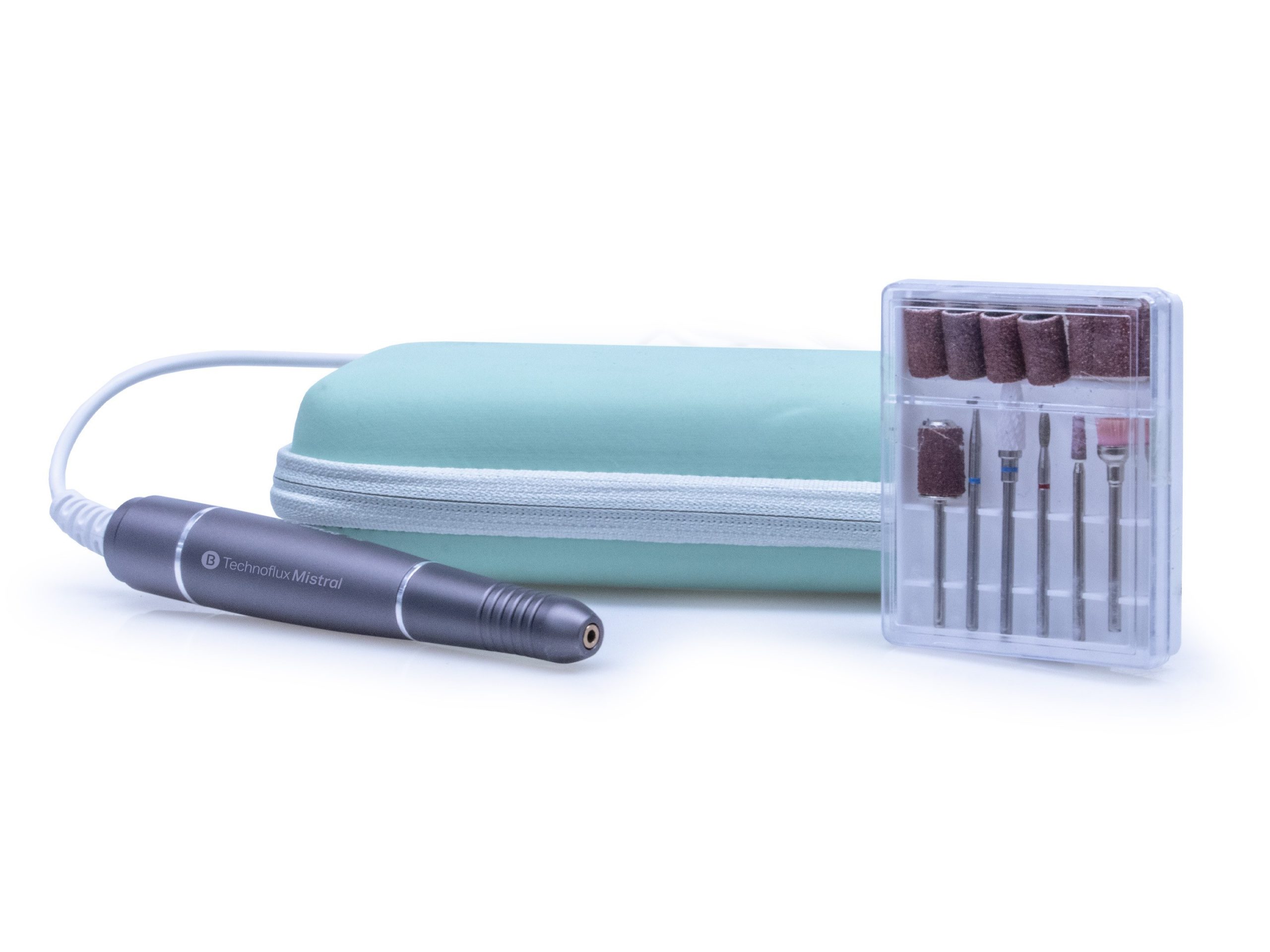 Gracias a su conexión USB, puede utilizarse de forma extremadamente versátil: con un adaptador de corriente estándar para móvil, una batería portátil (power bank) o incluso conectado directamente a un ordenador. El sistema de cambio de herramientas es rápido y práctico: no es necesario abrir la pinza de 2,35 mm, ya que los abrasivos y fresas se insertan y extraen fácilmente a presión.