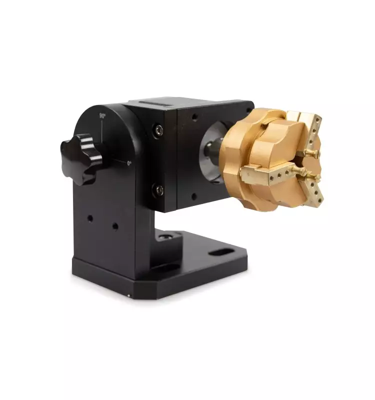 Mordaza universal indicada para el grabado y corte de anillos pulseras y cualquier objeto cilíndrico o circular, viene equipada con variador de ángulos.