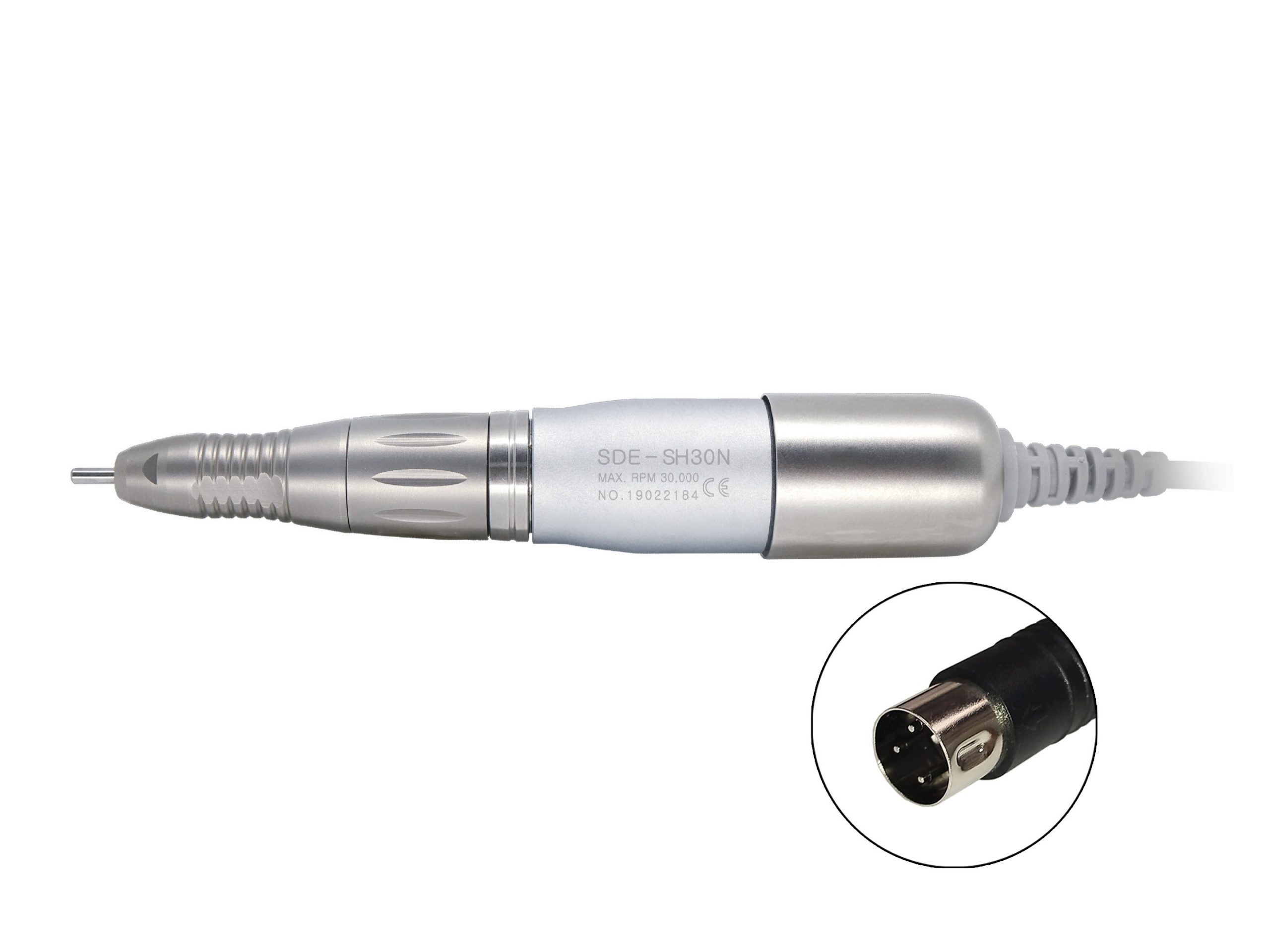 Pieza de mano con escobillas Marathon SH30N, compatible con la unidad K35. Ofrece hasta 30.000 RPM con alto par de torsión, ideal para trabajos de precisión en joyería.