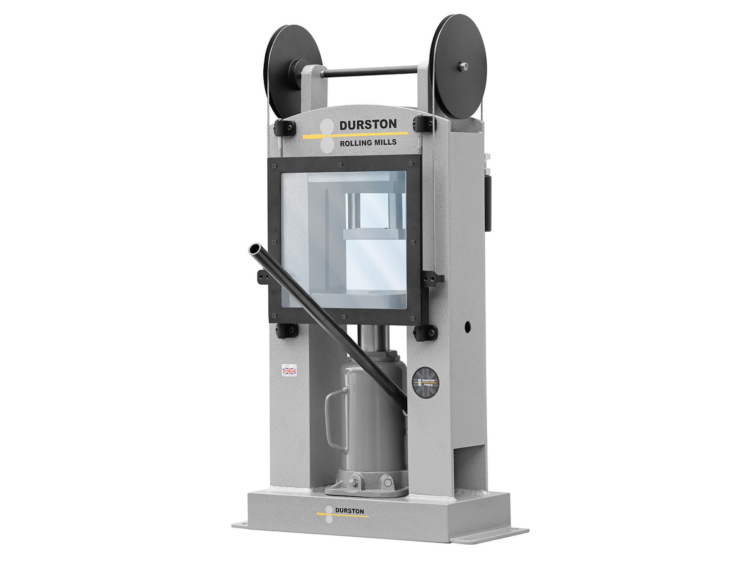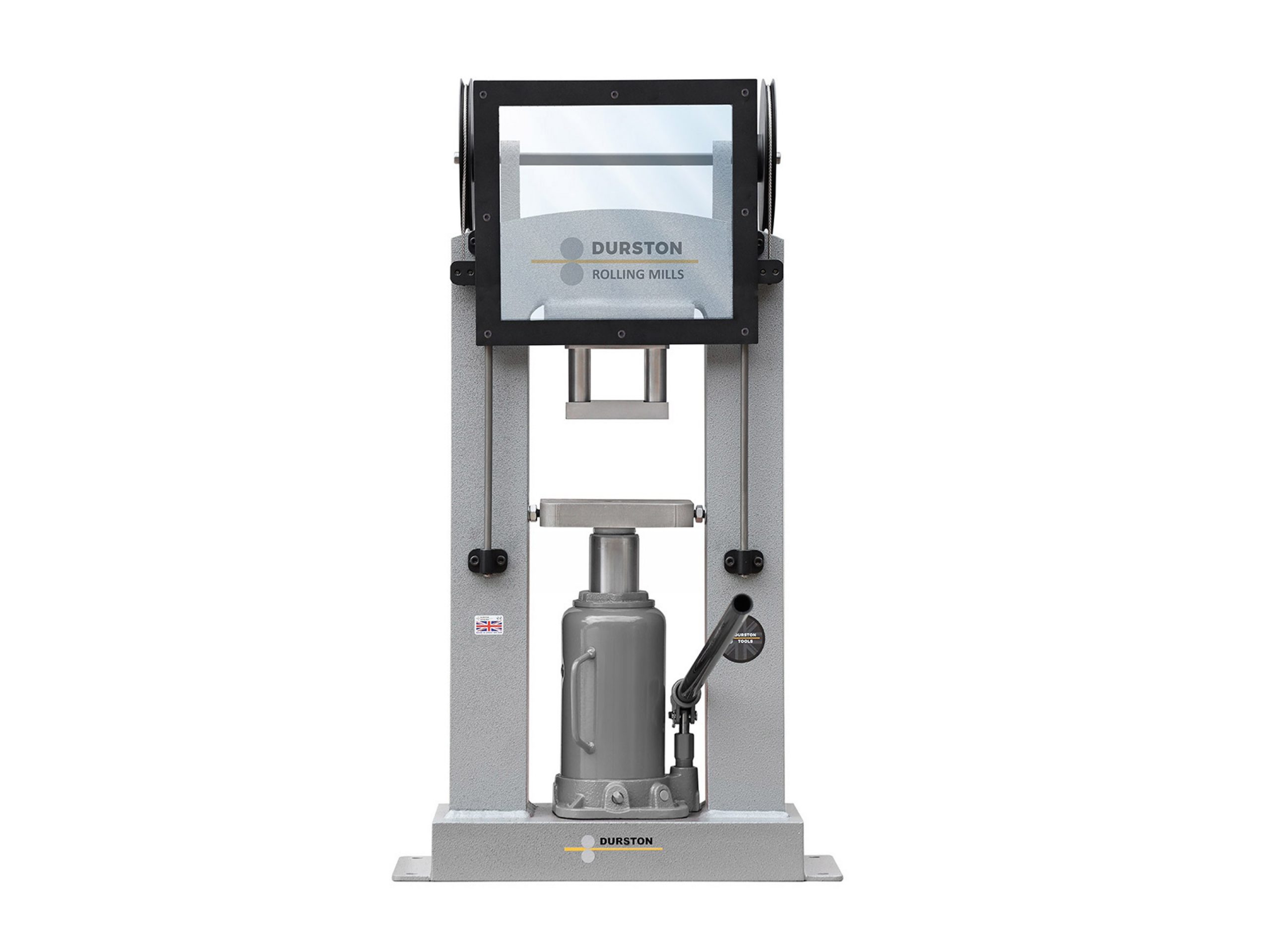 Prensa hidráulica manual Durston de 20 toneladas, ideal para aplicaciones de joyería y metalurgia que requieren alta presión y precisión.