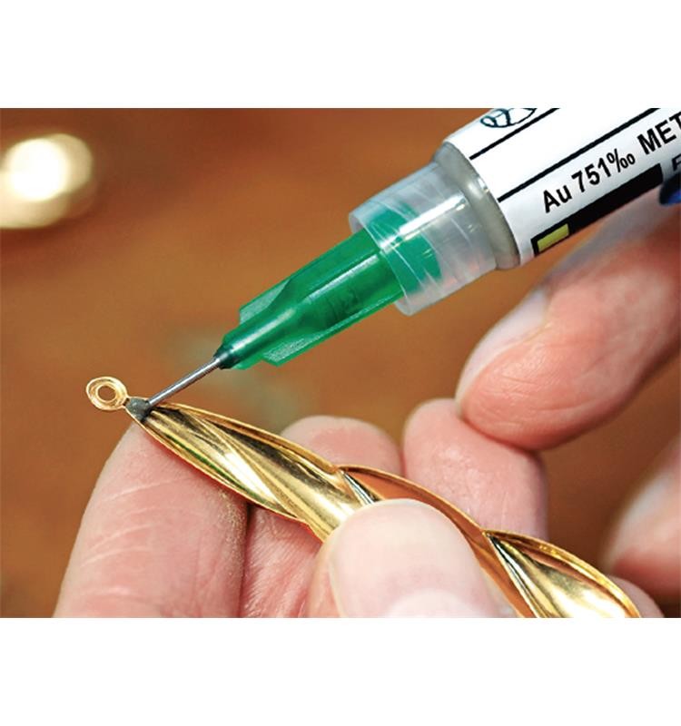 Pasta de soldadura para oro de 14 k de Hilderbrand. Puede ser utilizada en distintas zonas de las piezas a soldar, con la única aplicación de calor y un solo tipo de soldadura. Su composición evita el riesgo de pérdida por desprendimiento al aplicar la llama directamente, ya que la soldadura queda adherida a la pieza.