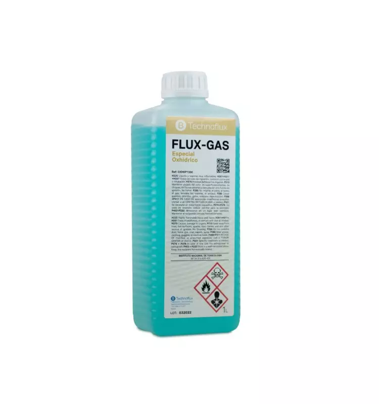 Compuesto a base de FLUX-GAS Y FLUX-2 para dotar de propiedades desoxidantes al gas producido por el soldador oxhídrico. Se obtiene una llama verde que facilitará la soldadura. Unidad de venta: Envase de 1 litro