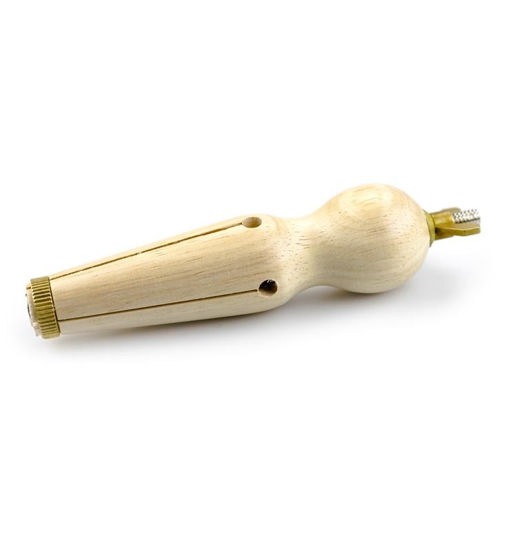 Tornillo de mano de alta calidad fabricado en madera de boj especialmente indicado para sujetar anillos por el interior. Contiene cuatro ranuras que se abren con el giro de una tuerca.